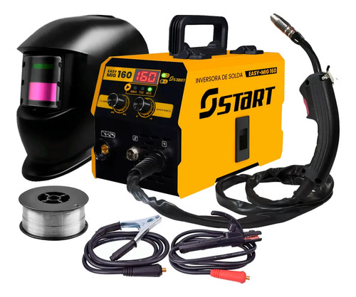 Máquina De Solda Inversora Mig 160a Sem Gás 3 Em 1 Tig Lift Eletrodo Easymig Start Com Máscara De Solda Automática Amarelo 220v