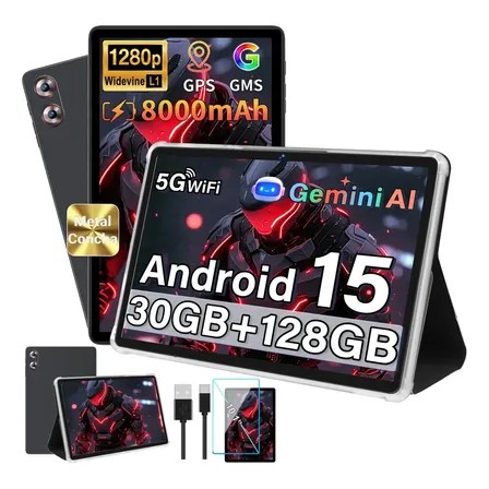 2026 Android 15 Com Gemini Ai Tablet 10 Polegadas Com 30gb Ram+128gb Rom/tf 2tb,2.4g/5g Wifi6,com Gps Desbloqueio Facial,tela Hd Ips Widevine L1, Bluetooth 5.0,8000 Mah,5mp+8mp Com Capa-cor Cinza