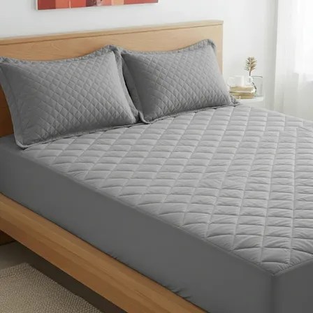 Kit Casal Com 3 Pçs Protetor Colchão + 2 Fronhas Mateladas Cor Cinza Desenho Do Tecido Matelado Kit Protetor Casal 2 Fronhas