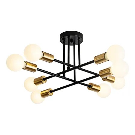 Luminária Lustre Teto Moderno Pendente Para Sala 8 Lâmpadas Cor Preto E Dourado 127/220v Amarelo