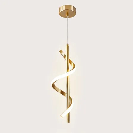 Lustre Led Espiral, Luminária Pendente Ajustável De 12w, Bivolt Automático, Lustre Moderno De Luxo, Luminária De Quarto De Luxo, Ideal Para Sala E Quarto, Tieesa D014 Dourado 127/220v