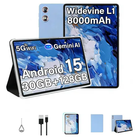 Tablet 10 Polegada 10 Pol Android 15 30gb Ram 128 Gb Rom (2tb Tf), Octa-core, Wifi 5g, Bateria De 8000 Mah, Bluetooth 5.0, Con Protetor De Tela, Cabo De Dados, Capa Protetora Azul