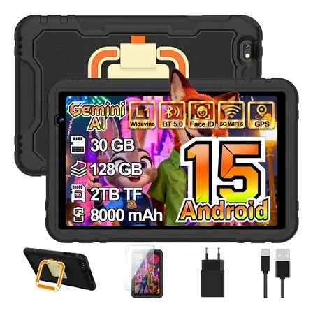 2026 Android 15 Tablet Com Gemini Ai 10 Polegadas Com 30gb Ram+128gb Rom/tf 2tb,2.4g+5gwifi6,tela Hd Ips Widevine L,com Gps Desbloqueio Facial, Bluetooth 5.0,5mp+8mp Com Eva Capa Protector Preto