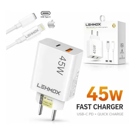 Carregador Turbo 45w Usb C Para Apple iPhone 11 12 13 14 Pro Max AirPods iPad Fonte Power Carga Rápida Pd Quick Charge Branco