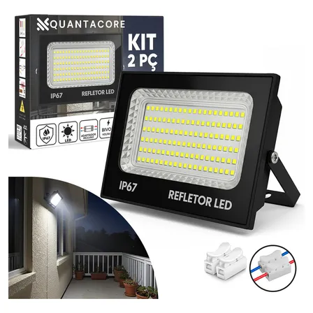 Kit 2 Refletores Led 600w Quantacore Branco Frio 6500k Ip67 Preto 127/220v