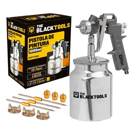 Pistola Pintura Sucção 1000ml 3 Bicos 1.2 1.5 1.8 Btpt1100 Profissional The Black Tools Prateado