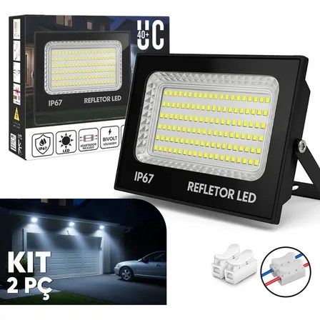 Refletor Led 300w Branco Frio Ip67 Uc40+ Iluminação Externa Kit 2 Peças 127/220v Preto