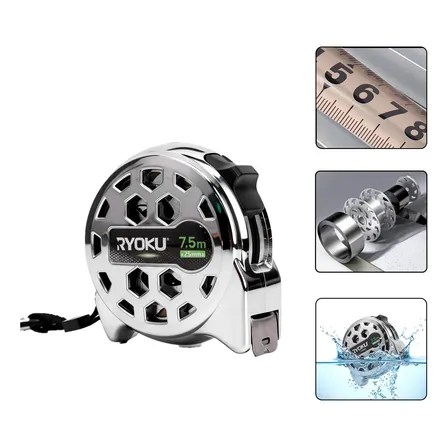 Trena Fita Métrica Aço Inox Retrátil Prova D’água 7.5m Ryoku