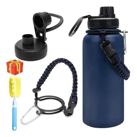Garrafa Térmica 1200ml Isolada A Vácuo Água Gelada / Esporte Azul Esporte E Café + Escova De Limpeza Garrafa Térmica… Azul-marinho