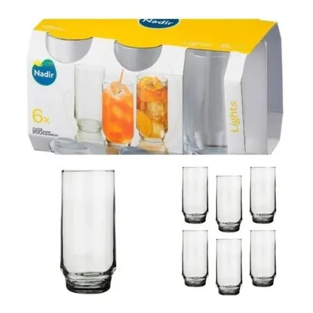 Jogo 6 Copos Vidro 410ml Nadir Figueiredo Transparente Linha Light’s