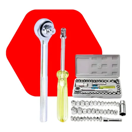 Kit Jogo De Ferramentas 40 Peças Profissional Peças Chave Fenda Philips Soquete 1em Aço Crv Resistente Completo Para Manutenção Carro Moto Casa Cinza