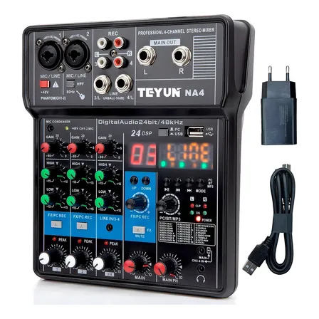 Mesa De Som Interface Bluetooth 4canais Teyun 24 Efeitos Voz 127/220v