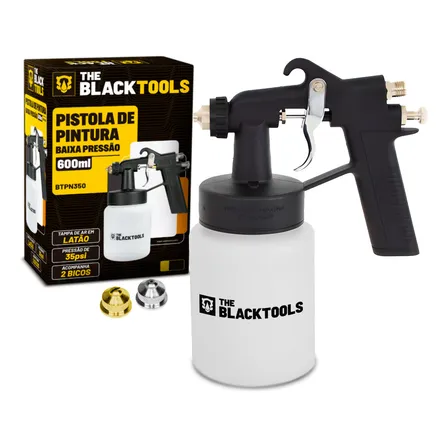 Pistola De Pintura Ar Direto Com Copo 600ml Baixa Pressão Btpn350 The Black Tools Branco/preto