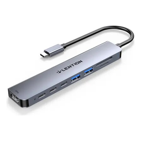 Usb-c Hub Leitor De Cartao Sd/tf Lention 8 Em 1 Hdmi 4k@60hz Adaptador Dongle 2x Usb-c 3.0 & 2x Usb-a 3.0 Data Porta,… Cinza