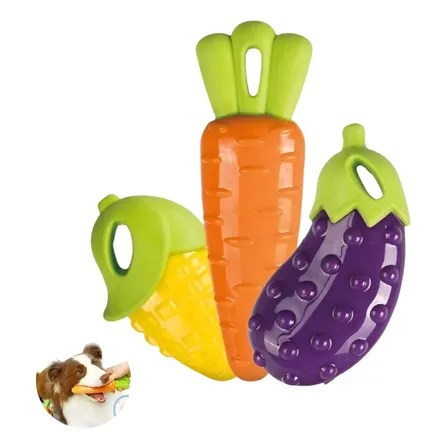 3 Brinquedos Pet Mordedor Cenoura Milho Beringela Com Apito