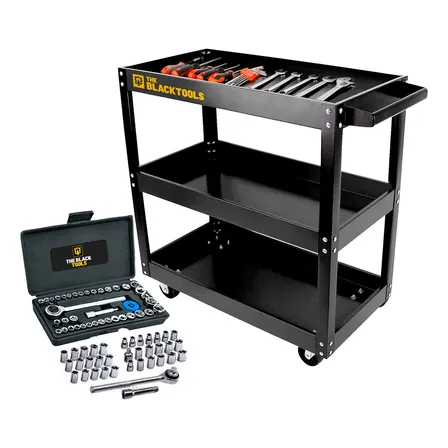 Carrinho De Ferramentas Aberto Mecanico Oficina Bcm400 The Black Tools + Kit Jogo De Soquetes 40 Peças Preto