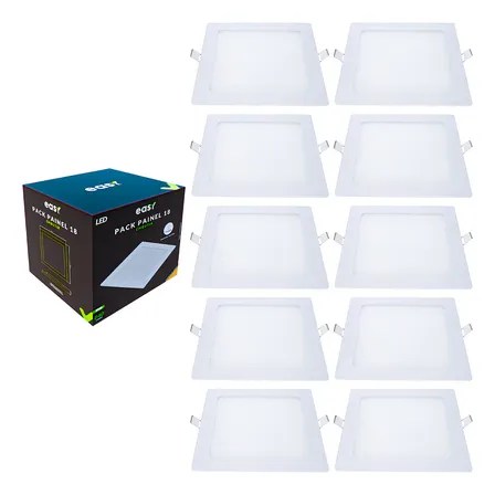 Kit 10 Painel Plafon Embutir Led 18w Quadrado 3000k Branco Quente – Easy 127/220v