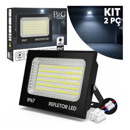 Kit 2 Refletores Led B&g 400w Ip67 Branco Frio 6500k Alumínio Preto 127/220v