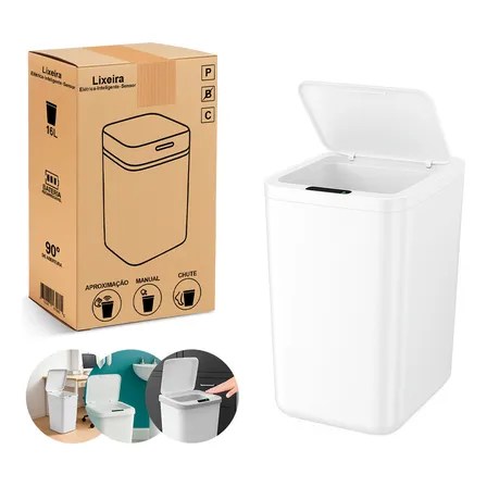 Lixeira Inteligente Automática Branca Universal Com Sensor Ava Gaga Recarregável Anti Odor 16l Branco