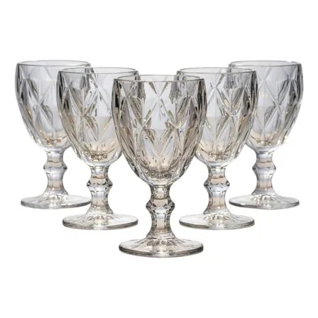 Jogo 6 Taças Diamante Vidro 330ml Copo Diamond Moderno Luxo Cor Transparente Lapidado Cristal Resistente Elegante Decoração Premium Evento Festa Utensílio Clássico Beber The Coração Estética Do Lar
