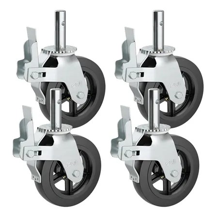 Kit 4 Rodízios Para Andaime Giratório Com Freio Trava Dupla 1600kg Profissional Industrial Roda Borracha 6 Polegadas Construção Civil Marca Rrj Preto