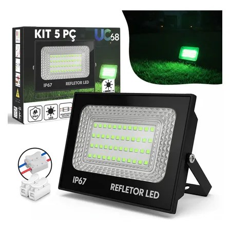 Kit 5 Refletores Led 200w Verde Alta Potência Uc68 Ip67 Alumínio Preto 127/220v