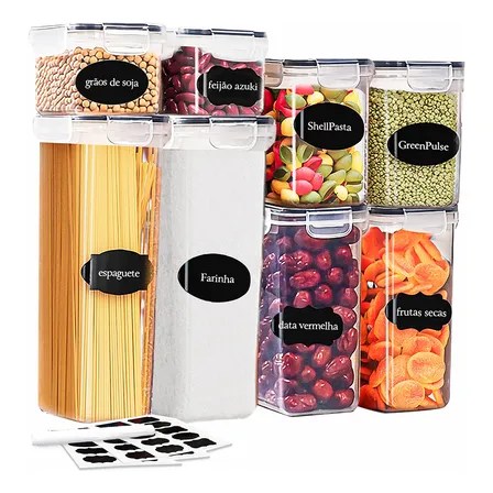 Kit 8 Potes Herméticos Vie Idéale Plástico Abs Tampa Hermética Branco