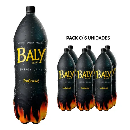 Pack Com 6 Unidades Energético Baly Energy Drink Tradicional 2l