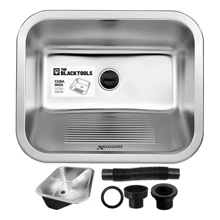 Tanque Cuba Embutir E Sobrepor 55×45 28 Litros Aço Inox Com Sifão E Válvula Siena Vcb100 The Black Tools Prateado