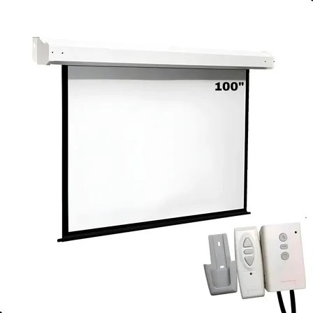 Tela De Projeção Elétrica – Domori – 100 Polegadas Retratil C/ Controle Remoto Automação Alexa Igreja Matte White Hd Profissional Premium 127v