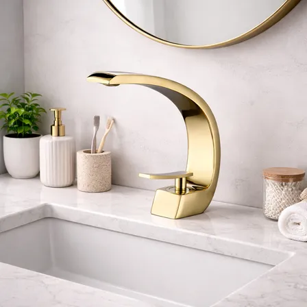 Torneira Banheiro Monocomando Cascata Curva Dourada Premium Acabamento Brilhante