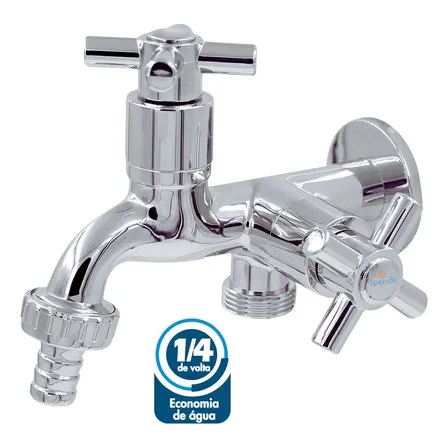 Torneira Máquina De Lavar Dupla Tanque 2 Saídas Multiuso Em Abs Ivendi 1/4 De Volta Cor Prateado Brilhante Cromado