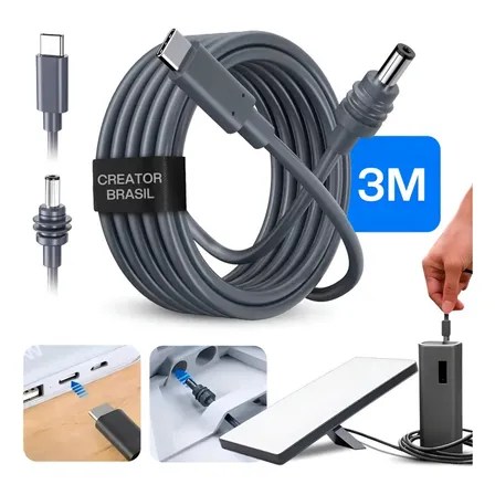 Cabo Carregador Para Starlink Tipo C 3m Mini Dc Usb-c Plug Carregamento Rápido Pd Prova Dágua Para 65w-100w Powerbank Notebook Creator Brasil Preto