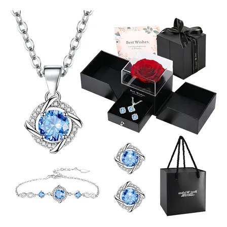 Colar Feminino Conjunto Para Presente,caixa De Presente De Colar Trevo De Quatro Folhas – Presente Feminino.presenteie… Azul