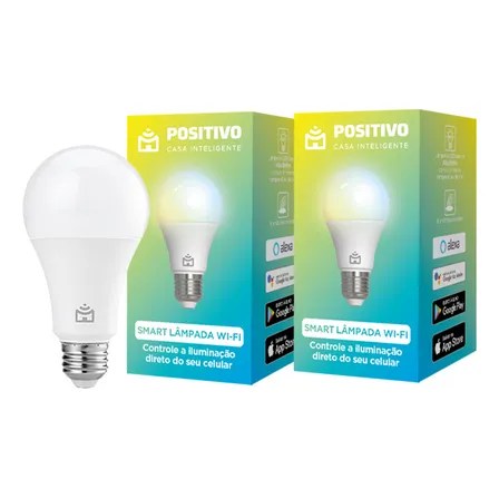 Kit 2 Lâmpadas Smart Wi-fi Positivo Casa Inteligente 9w Bivolt, Compatível Com Alexa E Google Assistente, Controle Por App E Voz, Rgb