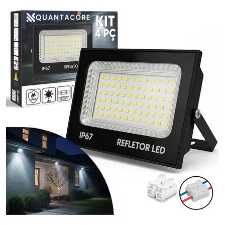 Kit 4 Refletores Quantacore Led 400w Branco Frio 6500k Ip67 Carcaça Preta 127/220v Preto