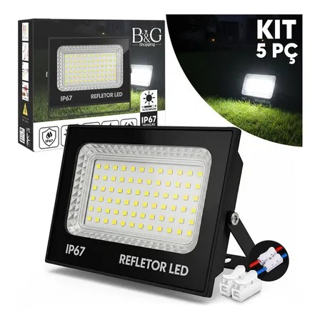 Kit 5 Refletor Holofote 300w Super Led Ip67 Prova D´agua Cor Da Carcaça Preto Branco Frio 6500k 127/220v