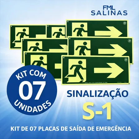Kit 7 Placas Sinalização Saída De Emergência S-1 Seta Direita Fotoluminescente Rota De Fuga Abnt Nbr 13434 Placa Exit O.t Alta Visibilidade Verde Para Condomínios Comércios Indústrias