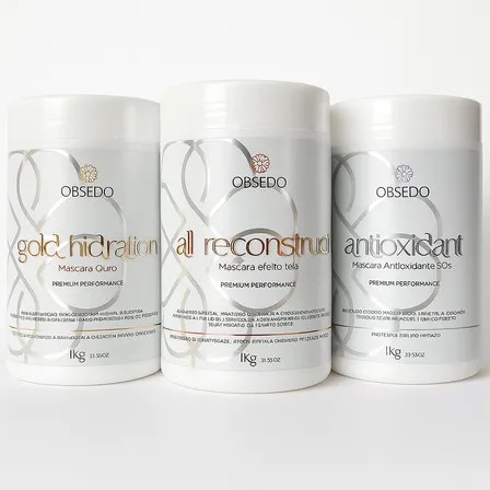Kit Obsedo 3 Máscaras Cronograma Profissionais 1kg Hidratação Ouro, Reconstrução Teia E Antioxidante | Tratamento De Salão Para Cabelos Danificados E Sem Brilho