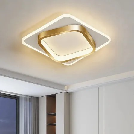 Luminária De Teto Plafon Quadrado, Luminária Led Moderna 15w, Bivolt 110265v, Iluminação Decorativa 3000k6000k Ajustável, Para Sala, Quarto E Sala De Jantar, Tieesa Dourado 127/220v Branco
