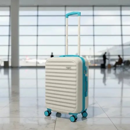 Mala De Bordo 10kg Kaizen Santorini Bege E Azul Rígida P Padrão Anac Viagem Avião Rodinha 360 Graus Reforçada Luxo Off White