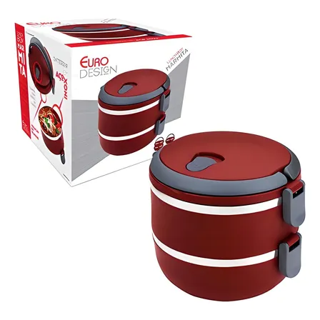 Marmita Térmica Dupla 1,4l Lunch Box Vermelha Euro Home Cor Vermelho