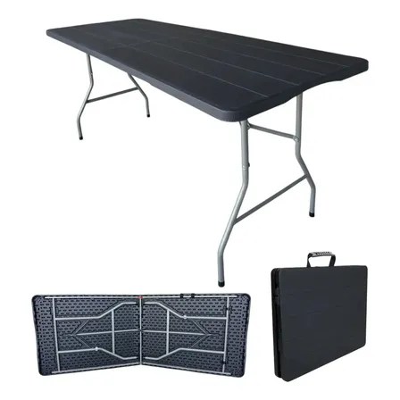 Mesa Portátil 1.80m 6 Lugares Highload Dobrável Vira Maleta Com Alça Motorhome Salão De Festas Camping Praia Jardim Área Externa Gourmet Preto