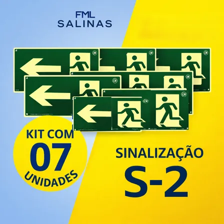 Placas Sinalização Saída De Emergência S-2 Seta Esquerda O.t Kit 7 Fotoluminescente Rota De Fuga Abnt Nbr 13434 Placa Exit Alta Visibilidade Verde Condomínios Comércios Indústrias