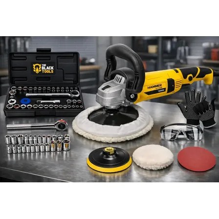 Politriz Angular Automotiva 7 Pol + Kit Acessórios 42 Peças Amarelo 127v