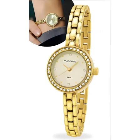 Relógio Mondaine Feminino Social Analógico Correia Dourado Bisel Dourado Fundo Branco