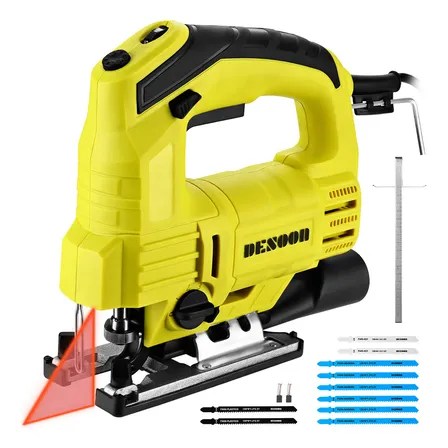 Serra Tico-tico 1000w Potência Contínua Profissional Com Laser E Luz De Led Corte Em Bisel ±45° 100mm Madeira Base Alumínio Desoon 220v