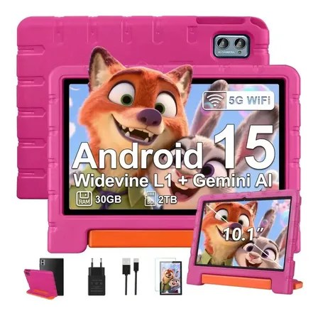 Tablet Infantil E Família Tablet 10 Polegada 10 Pol Android 15 30gb Ram +64gb Rom 2tbtf, 5g Wifi, Gemini Ai, Octa-core,… Rosa