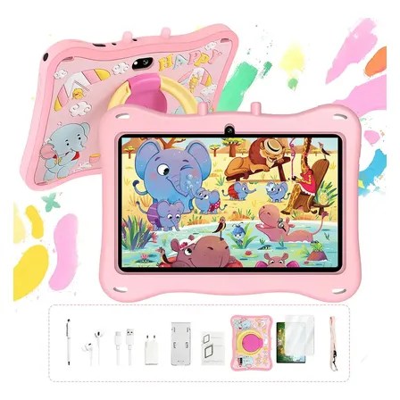 Tablet Infantil Kids Menina Tab Android 12 Ram 6gb 128gb 7” Hd Tela Apoia Wifi Bluetooth Com Caneta Capa Anti-queda Para Estudo Jogos Roblox Youtube Multi Rosa