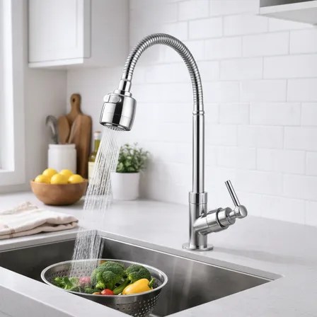 Torneira Gourmet Cozinha Flexível Chuveirinho 2 Jatos Bancada Mesa De Pia Cuba Luxo Grande Cano Metal Inox Base Em Abs… Torneira Cromada Inox Torneira Metal Brilhante